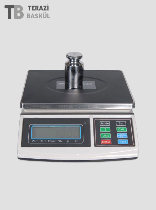 – Arkadan ışıklandırılmalı LCD gösterge – Orjinal cam fonusludur. 3 noktadan açılır. Sağdan-soldan ve üstten kaydırılmalı şekildedir. – Elektrikle ve akü ile kullanım özelliği – Doğru ve hassas tartım özelliği – Terazi için özel üretilmiş Kapasite üstü OIML Sertifikalı Loadcell(yük hücresi kullanılır – Darbeye dayanıklı sağlam demir gövde üzerine yük hücresi monte edilmiştir. – Basit sayım özelliği – 13 adet farklı tartım birimi mevcuttur – Otomatik kapanma – Farklı tartı birimleri vardır – Terazi ABS Dayanıklı plastik yapıda dış görünümlüdür – Tuş takımı ana lok sistem – Sağlam 1.Sınıf ABS Plastik dış kabı – Doğru ve hassas tartma yeteneği – Tuş takımı toza ve sıvıya karşı korumalı – Kararlı ve devamlı yük sistemli devre – Tuş takımı kesilse, delinse dahi çalışır – Koruyucu cam fanus (Rüzgarlık) – Otomatik kalibrasyon -Harici kalibrasyon özelliği ile kullanıcı tarafından kolay kontrol kalibrasyon yapıla bilme imkanı sunar – RS 232 bilgisayar bağlantısı mevcut – Yüksek lienearlilik sağlar kararlı çalışmaktadır – Paslanmaz çelik kefe yuvarlak 90 mm dir. – Terazi kalibrasyon odasında,kalibrasyon mermerinde CALL-SET ayarları yapıldıktan sonra testlerden geçerek servis edilir. – Standart olarak RS 232 çıkışa sahiptir.